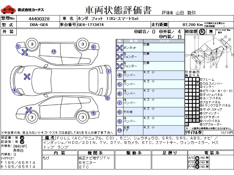 フル装備 / CD / 乗車定員(5人) / 集中ドアロック / エアバッグ / 助手席エアバッグ / ABS / カーナビゲーション(インダッシュ,HDD,2DIN) / テレビ(アナログ) / 地デジTV / バックカメラ / ETC / スマートキー / ウインカーミラー / ハイマウントストップランプ /