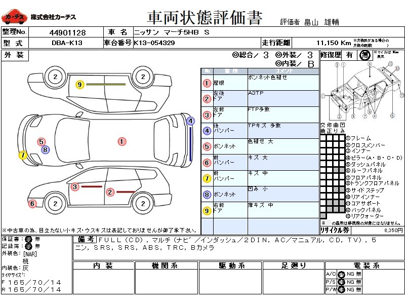 フル装備 / CD / マルチ(ナビ) / エアコン(マニュアル) / テレビ(アナログ) / 乗車定員(5人) / エアバッグ / 助手席エアバッグ / ABS / トラクションコントロール / バックカメラ /