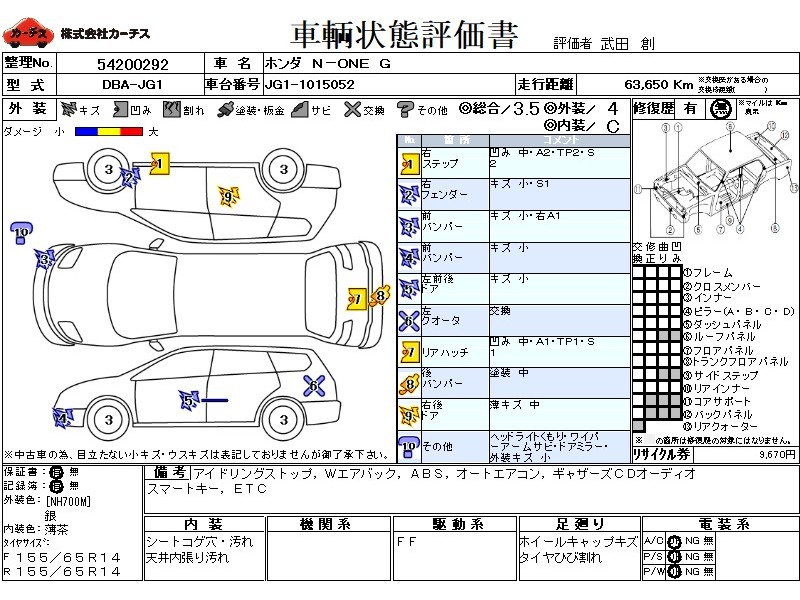 フル装備 / CD / 乗車定員(4人) / エアバッグ / 助手席エアバッグ / ABS / ETC(社外) / スマートキー / ハイマウントストップランプ /