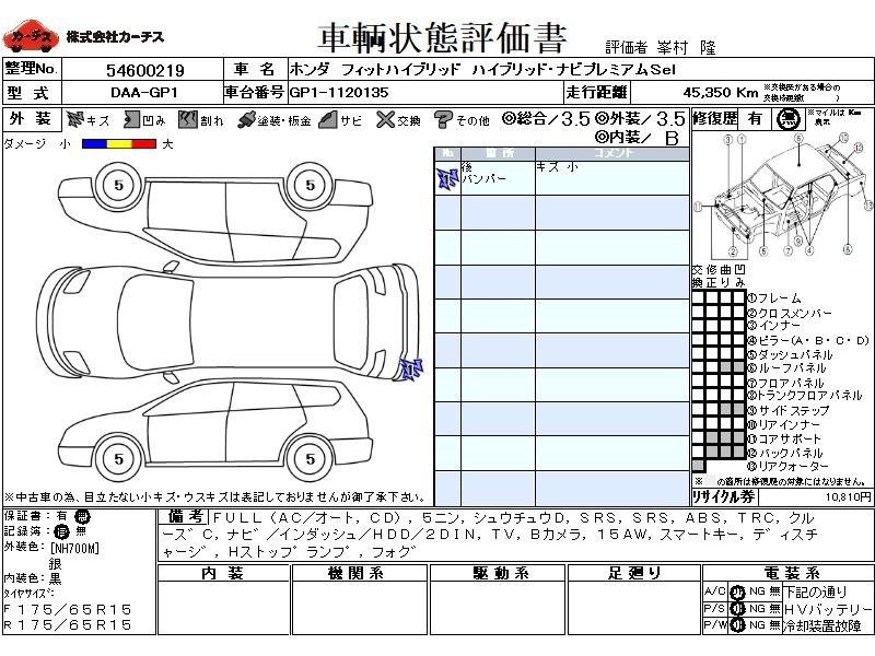 フル装備 / CD / 乗車定員(5人) / 集中ドアロック / エアバッグ / 助手席エアバッグ / ABS / トラクションコントロール / クルーズコントロール / カーナビゲーション(インダッシュ,HDD,2DIN) / テレビ(アナログ) / バックカメラ / ETC(社外) / アルミホイール(15インチ) / スマートキー / ディスチャージ / ハイマウントストップランプ / フォグランプ /