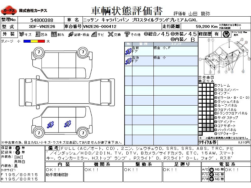 フル装備 / CD / 乗車定員(2人) / 集中ドアロック / エアバッグ / 助手席エアバッグ / ABS / トラクションコントロール / カーナビゲーション(インダッシュ,SSD,2DIN) / テレビ(アナログ) / 地デジTV / バックカメラ(サイドカメラ) / ETC / アルミホイール(15インチ) / スマートキー / ウインカーミラー / ハイマウントストップランプ / パワースライドドア / フォグランプ / リアスポイラー /