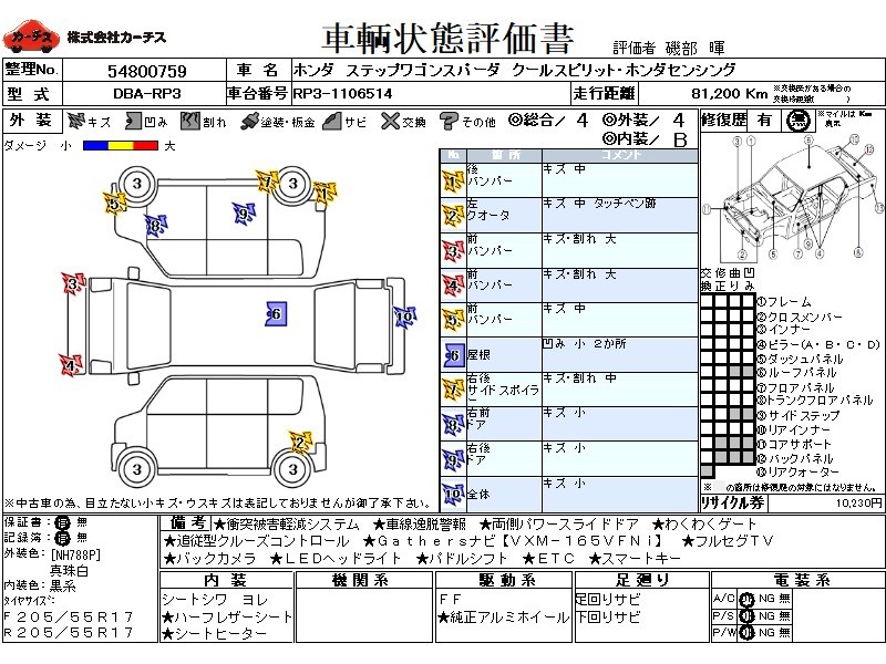 フル装備 / CD / 乗車定員(7人) / 集中ドアロック / エアバッグ / 助手席エアバッグ / サイドエアバッグ / ABS / トラクションコントロール / クルーズコントロール / カーナビゲーション(インダッシュ,HDD,2DIN) / 地デジTV / バックカメラ / ETC / アルミホイール(17インチ) / ハーフレザーシート / スマートキー / ウインカーミラー / ハイマウントストップランプ / パワースライドドア / フォグランプ / サイドスポイラー / リアスポイラー /