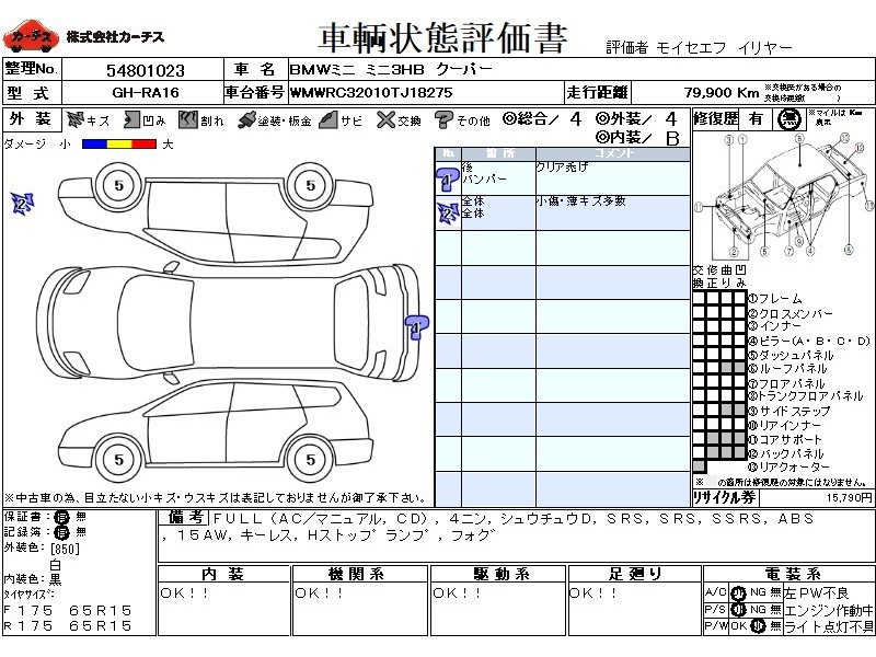 フル装備 / CD / 乗車定員(4人) / 集中ドアロック / エアバッグ / 助手席エアバッグ / サイドエアバッグ / ABS / ETC(社外) / アルミホイール(15インチ) / キーレスエントリー / ハイマウントストップランプ / フォグランプ /