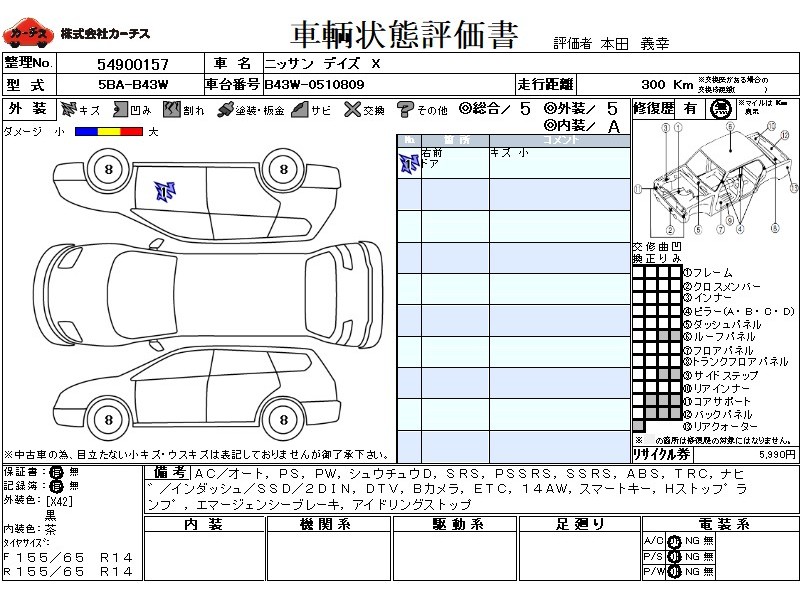 エアコン(オート) / パワーステアリング / パワーウィンドウ / 集中ドアロック / エアバッグ / 助手席エアバッグ / サイドエアバッグ / ABS / トラクションコントロール / カーナビゲーション(インダッシュ,SSD,2DIN) / テレビ(アナログ) / 地デジTV / バックカメラ / ETC / アルミホイール(14インチ) / スマートキー / ハイマウントストップランプ /