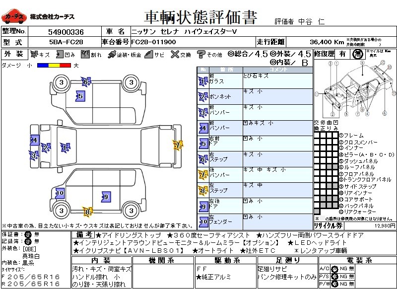 乗車定員(8人) / エアコン(オート) / パワーステアリング / パワーウィンドウ / 集中ドアロック / エアバッグ / 助手席エアバッグ / サイドエアバッグ / ABS / トラクションコントロール / クルーズコントロール / カーナビゲーション(社外)(インダッシュ,SSD,2DIN) / バックカメラ(フロント) / ETC(社外) / アルミホイール(16インチ) / スマートキー / ウインカーミラー / ハイマウントストップランプ / パワースライドドア / フォグランプ /