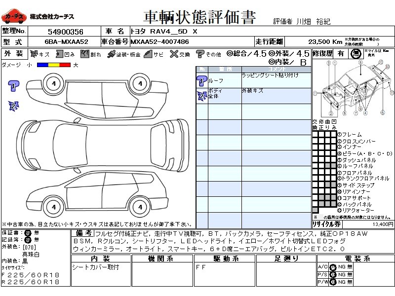 乗車定員(5人) / エアコン(オート) / パワーステアリング / パワーウィンドウ / エアバッグ / 助手席エアバッグ / サイドエアバッグ / ABS / クルーズコントロール / カーナビゲーション(SSD) / テレビ(アナログ) / 地デジTV / バックカメラ / ETC / アルミホイール(18インチ) / スマートキー / ウインカーミラー / ハイマウントストップランプ / フォグランプ / ルーフレール / リアスポイラー /