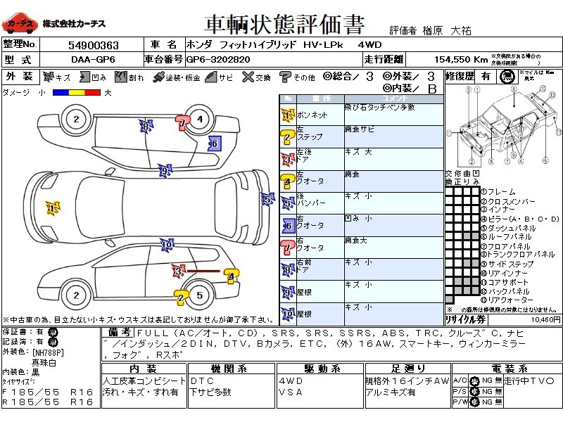 FULL(AC/オート,CD),SRS,PSSRS,SSRS,ABS,TRC,クルース゛C,ナヒ゛/インダッシュ/2DIN,DTV,Bカメラ,ETC,(外)16AW,スマートキー,ウィンカーミラー,フォク゛,Rスホ゜