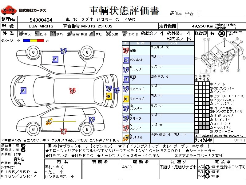 フル装備 / CD(社外) / 乗車定員(4人) / 集中ドアロック / エアバッグ / 助手席エアバッグ / ABS / トラクションコントロール / カーナビゲーション(社外)(インダッシュ,SSD,2DIN) / 地デジTV(社外) / ETC(社外) / アルミホイール(社外)(14インチ) / スマートキー / ハイマウントストップランプ /