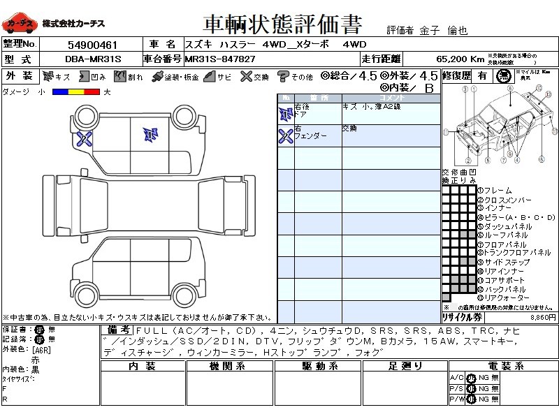フル装備 / CD / 乗車定員(4人) / 集中ドアロック / エアバッグ / 助手席エアバッグ / ABS / トラクションコントロール / カーナビゲーション(インダッシュ,SSD,2DIN) / 地デジTV / フリップダウンモニタ / バックカメラ / アルミホイール(15インチ) / スマートキー / ディスチャージ / ウインカーミラー / ハイマウントストップランプ / フォグランプ /