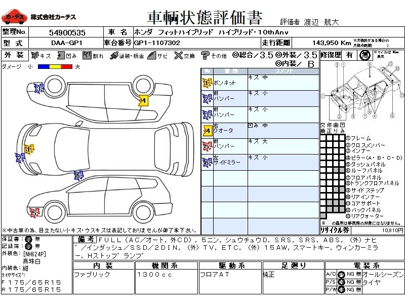 フル装備 / CD(社外) / 乗車定員(5人) / 集中ドアロック / エアバッグ / 助手席エアバッグ / ABS / カーナビゲーション(社外)(インダッシュ,SSD,2DIN) / テレビ(社外) / ETC / アルミホイール(社外)(15インチ) / スマートキー / ウインカーミラー / ハイマウントストップランプ /