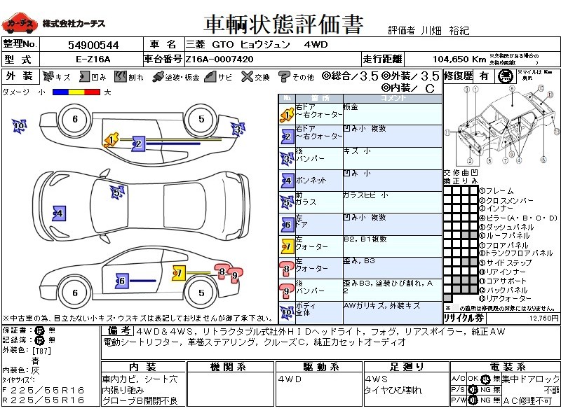 乗車定員(4人) / パワーステアリング / パワーウィンドウ / カセットデッキ / エアバッグ / ABS / クルーズコントロール / アルミホイール(16インチ) / フォグランプ / リアスポイラー /