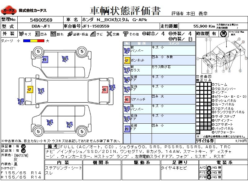 フル装備 / CD / 集中ドアロック / エアバッグ / 助手席エアバッグ / サイドエアバッグ / ABS / トラクションコントロール / カーナビゲーション(インダッシュ,SSD,2DIN) / テレビ(アナログ) / バックカメラ / アルミホイール(14インチ) / スマートキー / ディスチャージ / ウインカーミラー / ハイマウントストップランプ / パワースライドドア / フォグランプ / サイドスポイラー / リアスポイラー /