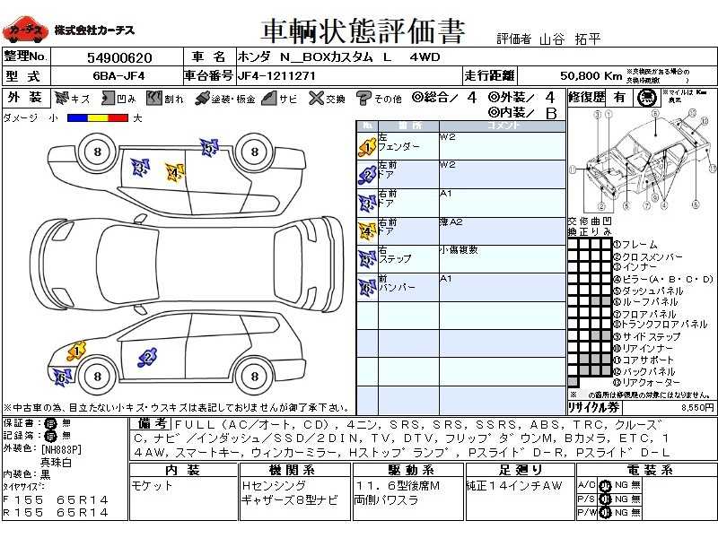 フル装備 / CD / 乗車定員(4人) / エアバッグ / 助手席エアバッグ / サイドエアバッグ / ABS / トラクションコントロール / クルーズコントロール / カーナビゲーション(インダッシュ,SSD,2DIN) / テレビ(アナログ) / 地デジTV / フリップダウンモニタ / バックカメラ / ETC / アルミホイール(14インチ) / スマートキー / ウインカーミラー / ハイマウントストップランプ / パワースライドドア / フォグランプ / サイドスポイラー / リアスポイラー /