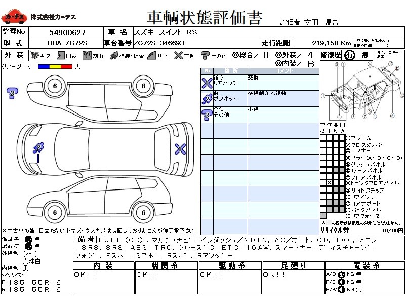 フル装備 / CD / マルチ(ナビ) / エアコン(オート) / テレビ(アナログ) / 乗車定員(5人) / エアバッグ / 助手席エアバッグ / ABS / トラクションコントロール / クルーズコントロール / ETC / アルミホイール(16インチ) / スマートキー / ディスチャージ / フォグランプ / フロントスポイラー / サイドスポイラー / リアスポイラー / リアアンダースポイラー /