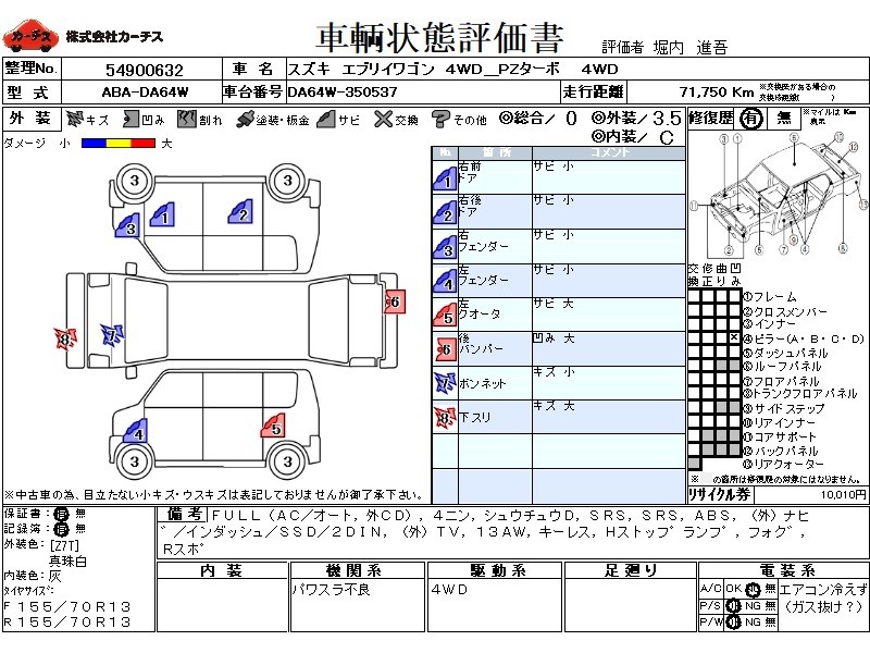 フル装備 / CD(社外) / 乗車定員(4人) / 集中ドアロック / エアバッグ / 助手席エアバッグ / ABS / カーナビゲーション(社外)(インダッシュ,SSD,2DIN) / テレビ(社外) / 地デジTV(社外) / アルミホイール(13インチ) / キーレスエントリー / ハイマウントストップランプ / フォグランプ / リアスポイラー /