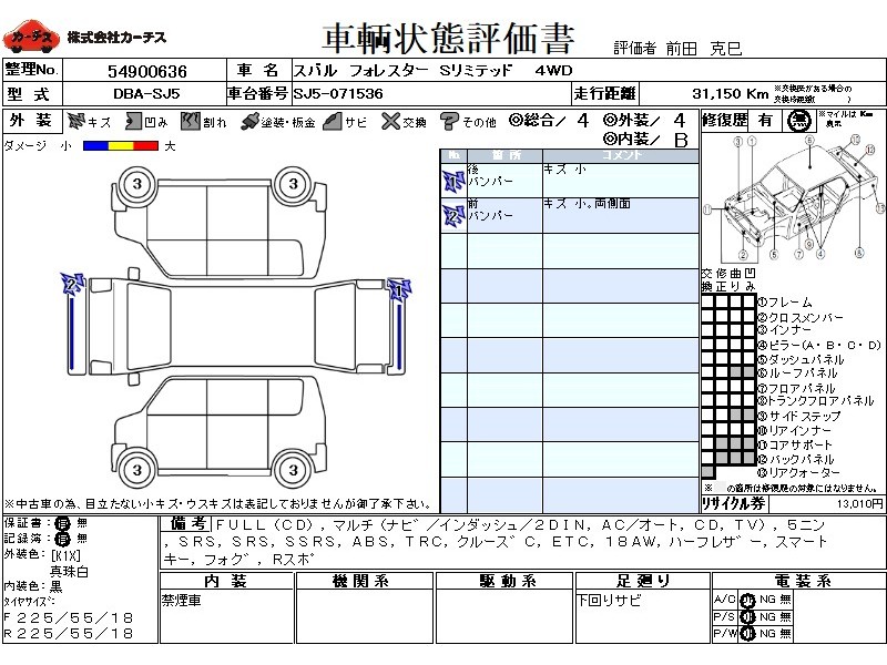 フル装備 / CD / マルチ(ナビ) / エアコン(オート) / テレビ(アナログ) / 乗車定員(5人) / エアバッグ / 助手席エアバッグ / サイドエアバッグ / ABS / トラクションコントロール / クルーズコントロール / ETC / アルミホイール(18インチ) / ハーフレザーシート / スマートキー / フォグランプ / リアスポイラー /