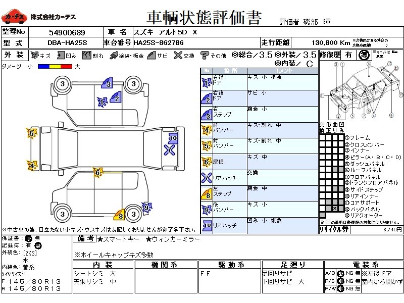 乗車定員(4人) / エアコン(マニュアル) / パワーステアリング / パワーウィンドウ / 集中ドアロック / CD / エアバッグ / 助手席エアバッグ / ABS / スマートキー /
