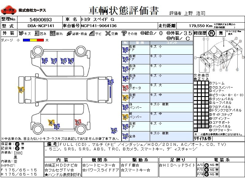 フル装備 / CD / マルチ(ナビ) / エアコン(オート) / テレビ(アナログ) / 乗車定員(5人) / エアバッグ / 助手席エアバッグ / ABS / トラクションコントロール / バックカメラ / ETC(社外) / スマートキー / ディスチャージ /