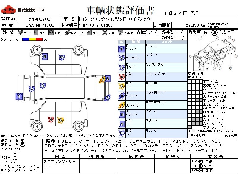 フル装備 / CD / 乗車定員(7人) / 集中ドアロック / エアバッグ / 助手席エアバッグ / サイドエアバッグ / ABS / トラクションコントロール / カーナビゲーション(インダッシュ,SSD,2DIN) / テレビ(アナログ) / 地デジTV / バックカメラ / ETC / アルミホイール(社外)(15インチ) / スマートキー / ウインカーミラー / ハイマウントストップランプ / パワースライドドア / フォグランプ / フロントスポイラー / サイドスポイラー / リアスポイラー / リアアンダースポイラー / マフラー(社外) /
