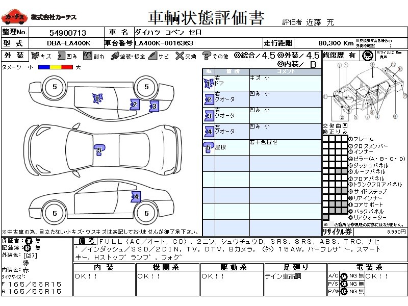 フル装備 / CD / 乗車定員(2人) / 集中ドアロック / エアバッグ / 助手席エアバッグ / ABS / トラクションコントロール / カーナビゲーション(インダッシュ,SSD,2DIN) / テレビ(アナログ) / 地デジTV / バックカメラ / ETC(社外) / アルミホイール(社外)(15インチ) / ハーフレザーシート / スマートキー / ハイマウントストップランプ / フォグランプ / 足回り /
