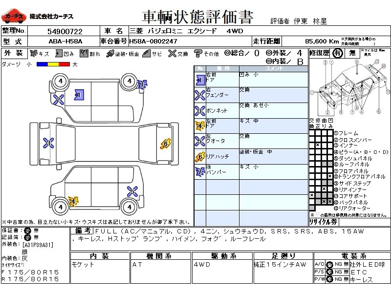 フル装備 / CD / 乗車定員(4人) / 集中ドアロック / エアバッグ / 助手席エアバッグ / ABS / ETC(社外) / アルミホイール(15インチ) / キーレスエントリー / ハイマウントストップランプ / 背面タイヤ / フォグランプ / ルーフレール /