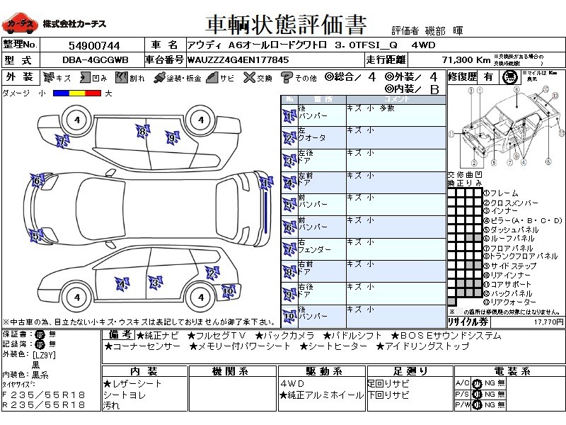 フル装備 / CD / 乗車定員(5人) / 集中ドアロック / エアバッグ / 助手席エアバッグ / サイドエアバッグ / ABS / トラクションコントロール / クルーズコントロール / カーナビゲーション(オンダッシュ,HDD,2DIN) / 地デジTV / バックカメラ / ETC / アルミホイール(18インチ) / 革シート(黒) / スマートキー / パワーバックドア / リアスポイラー /