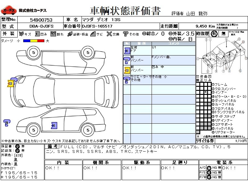 フル装備 / CD / マルチ(ナビ) / エアコン(マニュアル) / テレビ(アナログ) / 乗車定員(5人) / エアバッグ / 助手席エアバッグ / サイドエアバッグ / ABS / トラクションコントロール / スマートキー /