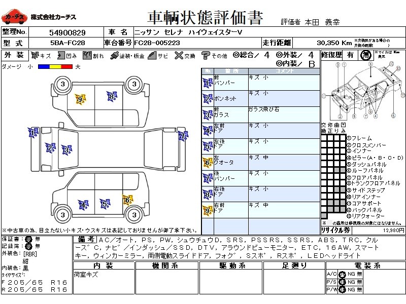 エアコン(オート) / パワーステアリング / パワーウィンドウ / 集中ドアロック / エアバッグ / 助手席エアバッグ / サイドエアバッグ / ABS / トラクションコントロール / クルーズコントロール / カーナビゲーション(インダッシュ,SSD) / テレビ(アナログ) / 地デジTV / バックカメラ(フロント) / ETC / アルミホイール(16インチ) / スマートキー / ウインカーミラー / ハイマウントストップランプ / パワースライドドア / フォグランプ / サイドスポイラー / リアスポイラー /