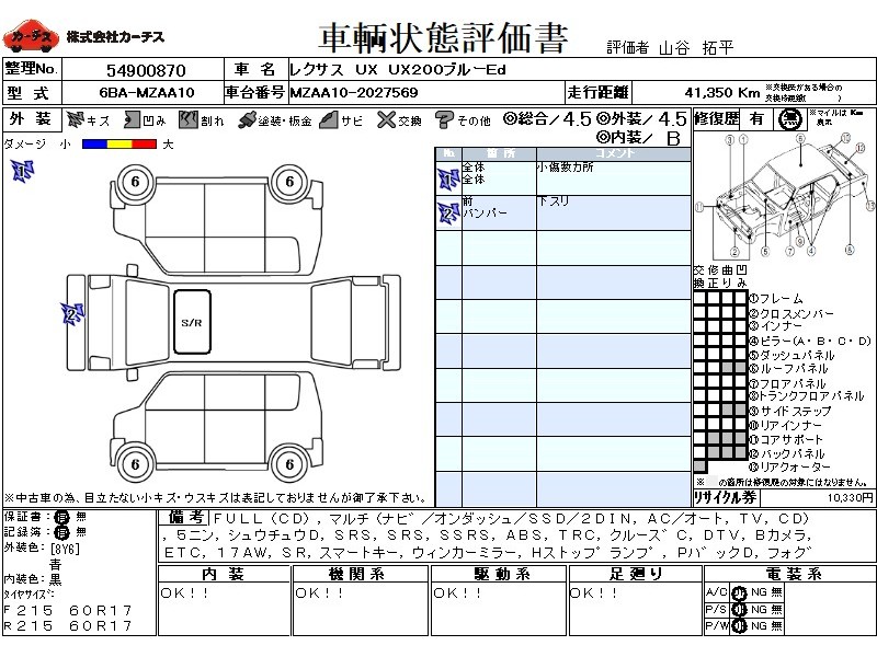 フル装備 / CD / マルチ(ナビ) / エアコン(オート) / テレビ(アナログ) / 乗車定員(5人) / 集中ドアロック / エアバッグ / 助手席エアバッグ / サイドエアバッグ / ABS / トラクションコントロール / クルーズコントロール / 地デジTV / バックカメラ / ETC / アルミホイール(17インチ) / サンルーフ / スマートキー / ウインカーミラー / ハイマウントストップランプ / パワーバックドア / フォグランプ / ルーフレール / リアスポイラー /