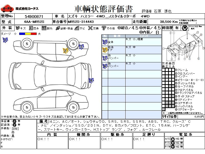 乗車定員(4人) / エアコン(オート) / パワーステアリング / パワーウィンドウ / 集中ドアロック / エアバッグ / 助手席エアバッグ / サイドエアバッグ / ABS / トラクションコントロール / クルーズコントロール / カーナビゲーション(インダッシュ,SSD,2DIN) / 地デジTV / バックカメラ(フロント) / ETC / アルミホイール(15インチ) / ハーフレザーシート / スマートキー / ウインカーミラー / ハイマウントストップランプ / フォグランプ / ルーフレール /