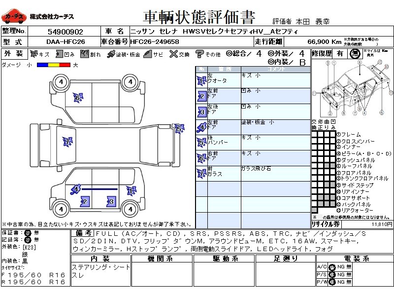 フル装備 / CD / エアバッグ / 助手席エアバッグ / ABS / トラクションコントロール / カーナビゲーション(インダッシュ,SSD,2DIN) / 地デジTV / フリップダウンモニタ / バックカメラ(フロント) / ETC / アルミホイール(16インチ) / スマートキー / ウインカーミラー / ハイマウントストップランプ / パワースライドドア / フォグランプ /