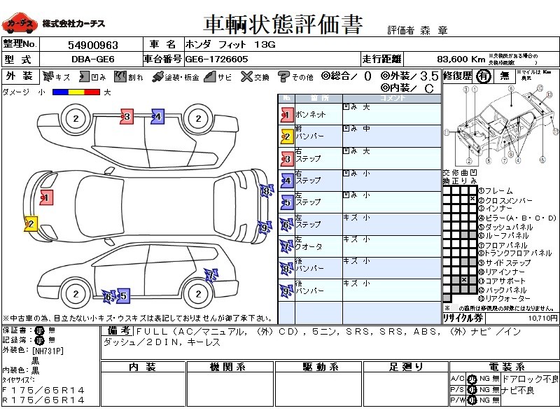 フル装備 / CD(社外) / 乗車定員(5人) / エアバッグ / 助手席エアバッグ / ABS / カーナビゲーション(社外)(インダッシュ,2DIN) / キーレスエントリー /