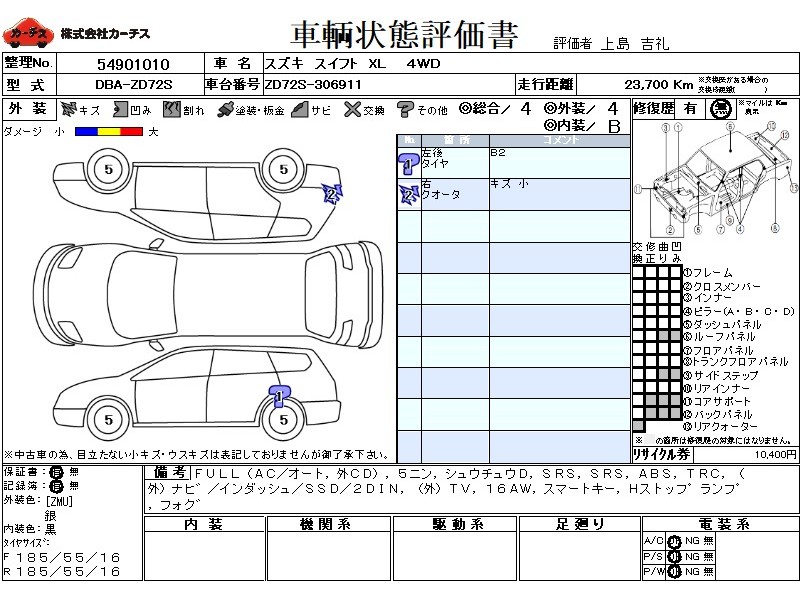 フル装備 / CD(社外) / 乗車定員(5人) / 集中ドアロック / エアバッグ / 助手席エアバッグ / ABS / トラクションコントロール / カーナビゲーション(社外)(インダッシュ,SSD,2DIN) / テレビ(社外) / アルミホイール(16インチ) / スマートキー / ハイマウントストップランプ / フォグランプ /