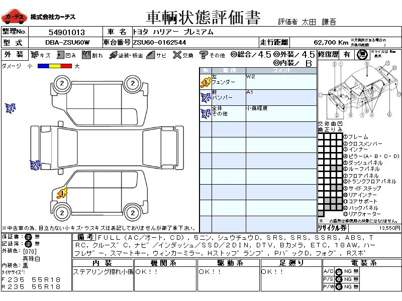 フル装備 / CD / 乗車定員(5人) / 集中ドアロック / エアバッグ / 助手席エアバッグ / サイドエアバッグ / ABS / トラクションコントロール / クルーズコントロール / カーナビゲーション(インダッシュ,SSD,2DIN) / 地デジTV / バックカメラ / ETC / アルミホイール(18インチ) / ハーフレザーシート / スマートキー / ウインカーミラー / ハイマウントストップランプ / パワーバックドア / フォグランプ / リアスポイラー /
