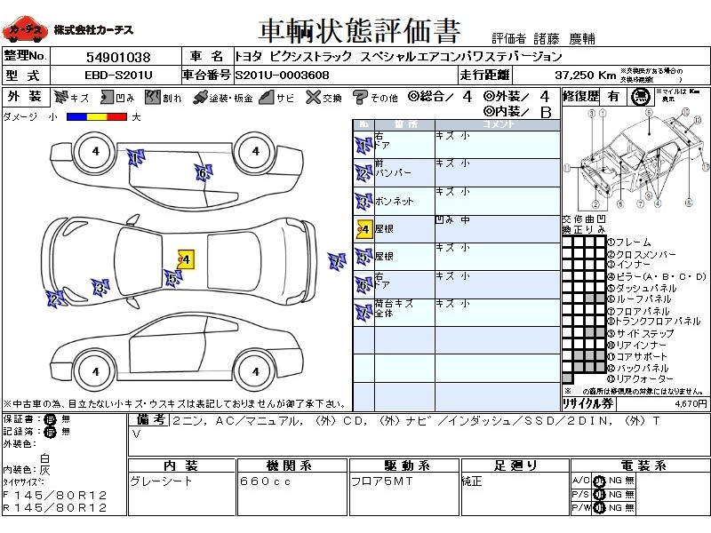 乗車定員(2人) / エアコン(マニュアル) / パワーステアリング / CD(社外) / カーナビゲーション(社外)(インダッシュ,SSD,2DIN) / テレビ(社外) / ETC(社外) /