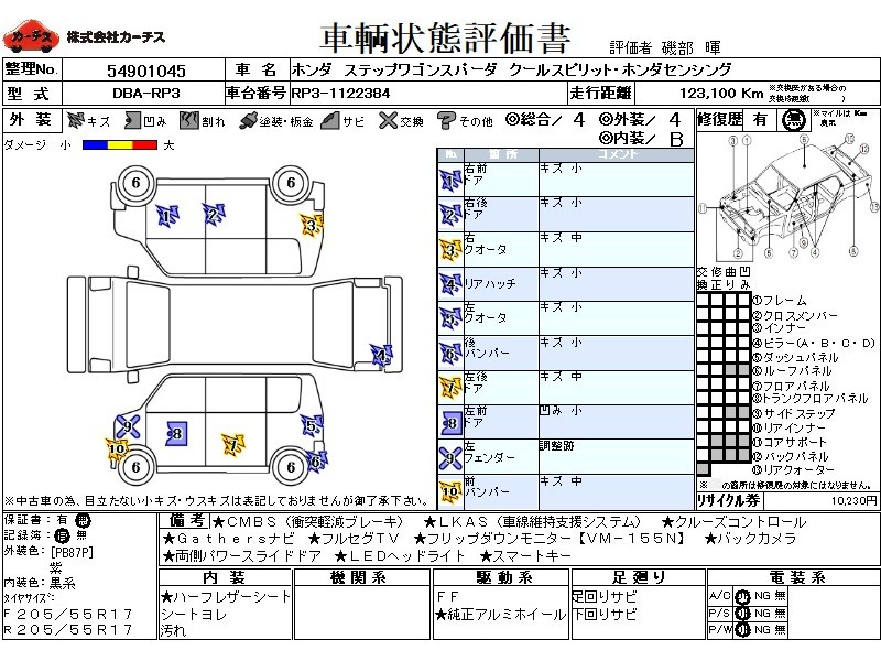 乗車定員(7人) / エアコン(オート) / パワーステアリング / パワーウィンドウ / 集中ドアロック / CD(社外) / エアバッグ / 助手席エアバッグ / サイドエアバッグ / ABS / トラクションコントロール / クルーズコントロール / カーナビゲーション(社外)(インダッシュ,SSD,2DIN) / 地デジTV(社外) / ETC / アルミホイール(17インチ) / ハーフレザーシート / スマートキー / ウインカーミラー / ハイマウントストップランプ / パワースライドドア / フォグランプ / リアスポイラー /