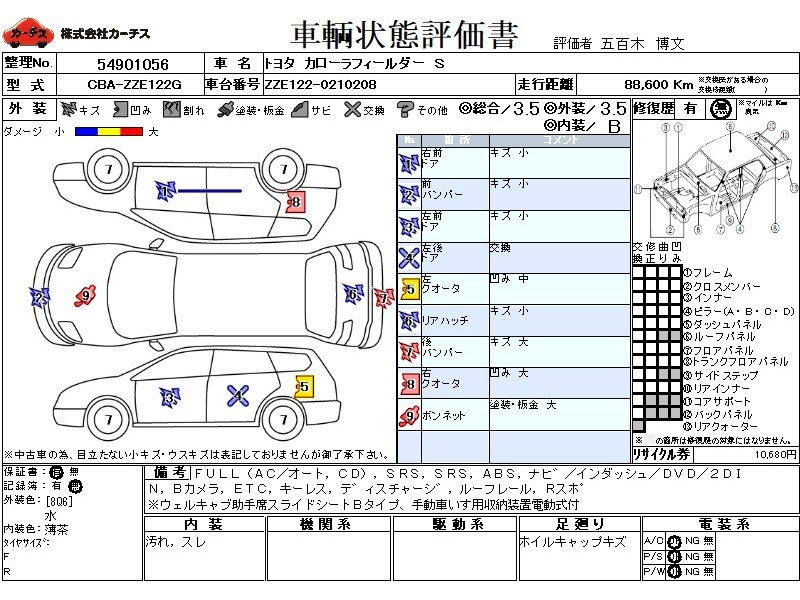 FULL(AC/オート,CD),SRS,PSSRS,ABS,ナヒ゛/インダッシュ/DVD/2DIN,Bカメラ,ETC,キーレス,テ゛ィスチャーシ゛,ルーフレール,Rスホ゜