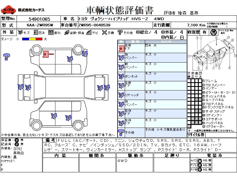フル装備 / CD / 乗車定員(7人) / 集中ドアロック / エアバッグ / 助手席エアバッグ / サイドエアバッグ / ABS / トラクションコントロール / クルーズコントロール / カーナビゲーション(インダッシュ,SSD,2DIN) / テレビ(アナログ) / バックカメラ / ETC / アルミホイール(16インチ) / ハーフレザーシート / スマートキー / ウインカーミラー / ハイマウントストップランプ / パワースライドドア / パワーバックドア / フォグランプ / サイドスポイラー / リアスポイラー /