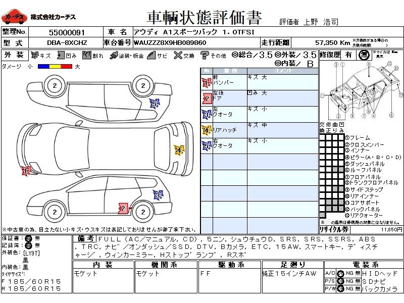 フル装備 / CD / 乗車定員(5人) / 集中ドアロック / エアバッグ / 助手席エアバッグ / サイドエアバッグ / ABS / トラクションコントロール / カーナビゲーション(オンダッシュ,SSD) / 地デジTV / バックカメラ / ETC / アルミホイール(15インチ) / スマートキー / ディスチャージ / ウインカーミラー / ハイマウントストップランプ / リアスポイラー /