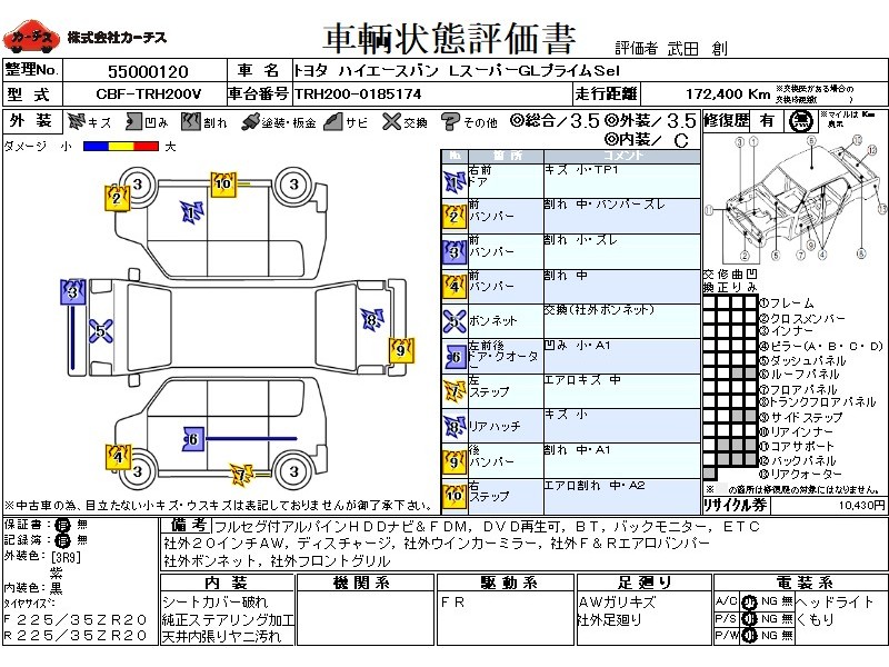 フル装備 / CD(社外) / 乗車定員(5人) / エアバッグ / 助手席エアバッグ / ABS / カーナビゲーション(社外)(HDD) / テレビ(社外) / 地デジTV(社外) / ETC(社外) / アルミホイール(社外)(20インチ) / ディスチャージ / ハイマウントストップランプ / サイドスポイラー(社外) / リアスポイラー(社外) / 足回り /