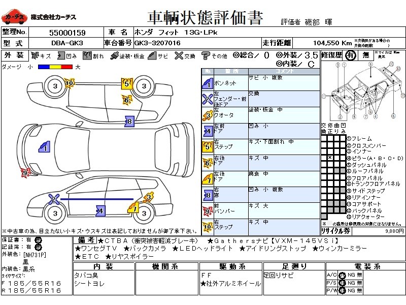 フル装備 / CD / 乗車定員(5人) / 集中ドアロック / エアバッグ / 助手席エアバッグ / ABS / トラクションコントロール / カーナビゲーション(インダッシュ,SSD,2DIN) / テレビ(アナログ) / バックカメラ / ETC / アルミホイール(社外)(16インチ) / スマートキー / フォグランプ /