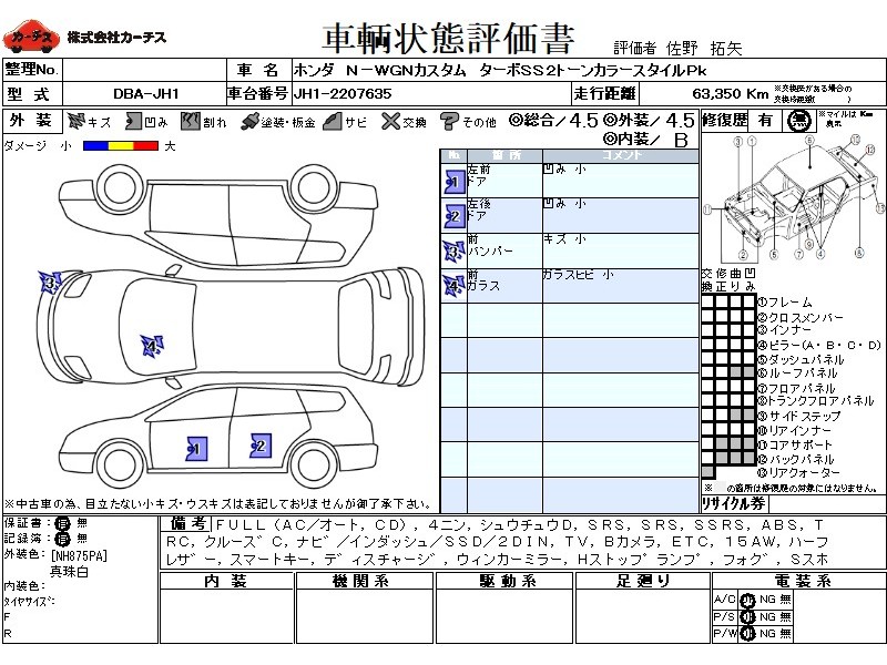 フル装備 / CD / 乗車定員(4人) / 集中ドアロック / エアバッグ / 助手席エアバッグ / サイドエアバッグ / ABS / トラクションコントロール / クルーズコントロール / カーナビゲーション(インダッシュ,SSD,2DIN) / テレビ(アナログ) / バックカメラ / ETC / アルミホイール(15インチ) / ハーフレザーシート / スマートキー / ディスチャージ / ウインカーミラー / ハイマウントストップランプ / フォグランプ / サイドスポイラー / リアスポイラー /