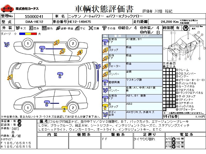 フル装備 / CD / 乗車定員(5人) / エアバッグ / 助手席エアバッグ / ABS / クルーズコントロール / カーナビゲーション(SSD) / テレビ(アナログ) / 地デジTV / バックカメラ / ETC / アルミホイール(15インチ) / スマートキー / ウインカーミラー / ハイマウントストップランプ /