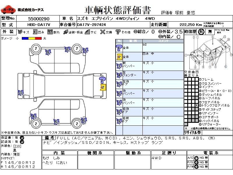 フル装備 / CD(社外) / 乗車定員(4人) / 集中ドアロック / エアバッグ / 助手席エアバッグ / ABS / カーナビゲーション(社外)(インダッシュ,SSD,2DIN) / キーレスエントリー / ハイマウントストップランプ /