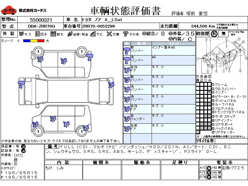 フル装備 / CD / マルチ(ナビ) / エアコン(オート) / 乗車定員(8人) / 集中ドアロック / エアバッグ / 助手席エアバッグ / ABS / キーレスエントリー / ディスチャージ / パワースライドドア /