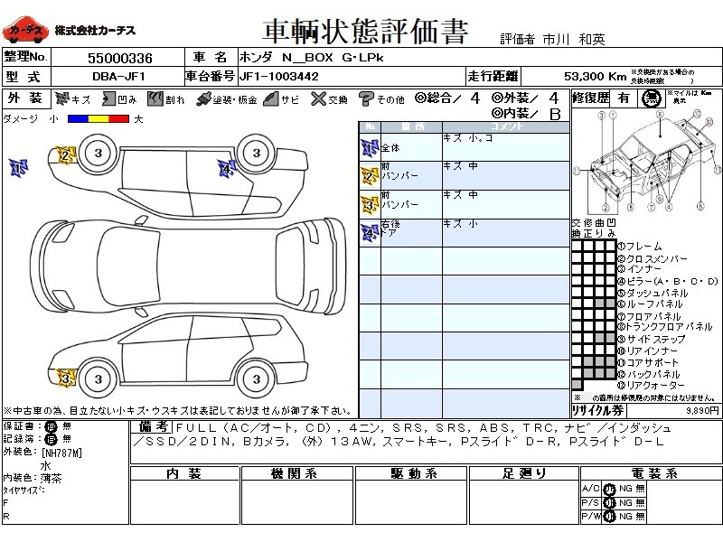 フル装備 / CD / 乗車定員(4人) / エアバッグ / 助手席エアバッグ / ABS / トラクションコントロール / カーナビゲーション(インダッシュ,SSD,2DIN) / バックカメラ / アルミホイール(社外)(13インチ) / スマートキー / パワースライドドア /