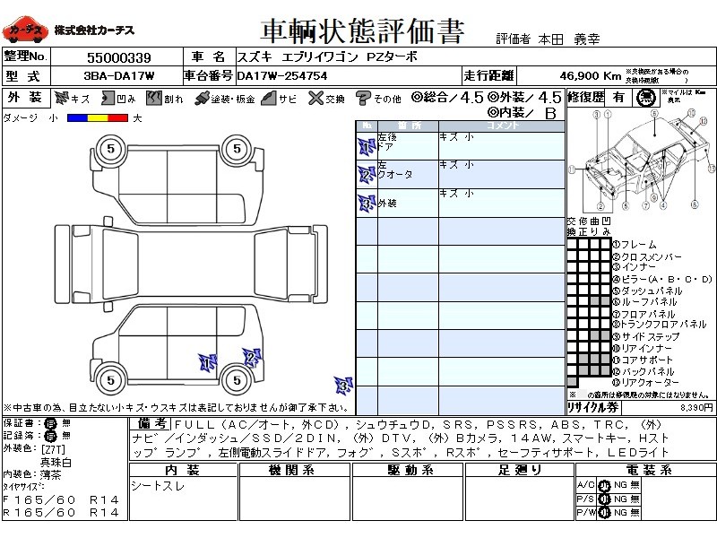 フル装備 / CD(社外) / 集中ドアロック / エアバッグ / 助手席エアバッグ / ABS / トラクションコントロール / カーナビゲーション(社外)(インダッシュ,SSD,2DIN) / テレビ(社外) / 地デジTV(社外) / アルミホイール(14インチ) / スマートキー / ハイマウントストップランプ / パワースライドドア / フォグランプ / サイドスポイラー / リアスポイラー /
