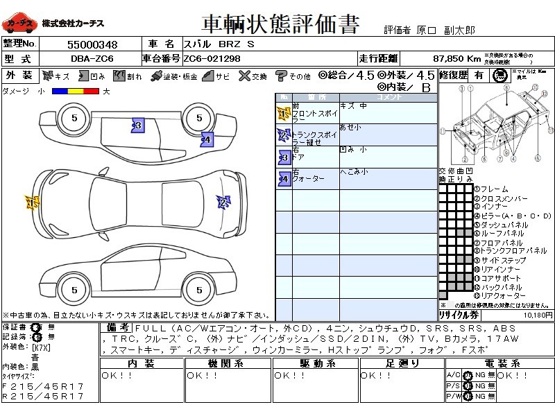 フル装備 / CD(社外) / 乗車定員(4人) / 集中ドアロック / エアバッグ / 助手席エアバッグ / ABS / トラクションコントロール / クルーズコントロール / カーナビゲーション(社外)(インダッシュ,SSD,2DIN) / テレビ(社外) / 地デジTV(社外) / バックカメラ / ETC(社外) / アルミホイール(17インチ) / スマートキー / ディスチャージ / ウインカーミラー / ハイマウントストップランプ / フォグランプ / フロントスポイラー / サイドスポイラー / リアスポイラー /