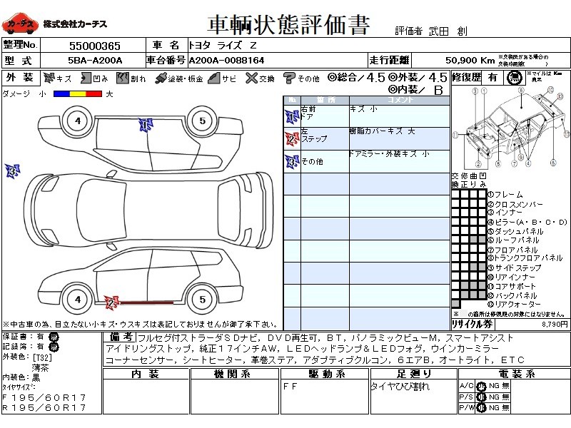 フル装備 / CD(社外) / 乗車定員(5人) / エアバッグ / 助手席エアバッグ / サイドエアバッグ / ABS / クルーズコントロール / カーナビゲーション(社外)(SSD) / テレビ(社外) / 地デジTV(社外) / ETC(社外) / アルミホイール(17インチ) / スマートキー / ウインカーミラー / ハイマウントストップランプ / フォグランプ / リアスポイラー /