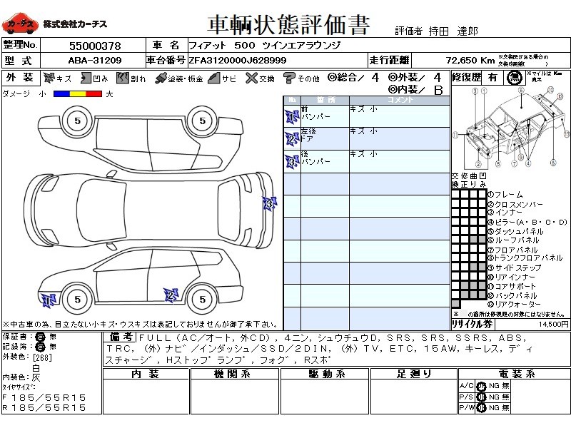 フル装備 / CD(社外) / 乗車定員(4人) / 集中ドアロック / エアバッグ / 助手席エアバッグ / サイドエアバッグ / ABS / トラクションコントロール / カーナビゲーション(社外)(インダッシュ,SSD,2DIN) / テレビ(社外) / 地デジTV(社外) / ETC / アルミホイール(15インチ) / キーレスエントリー / ディスチャージ / ハイマウントストップランプ / フォグランプ / リアスポイラー /